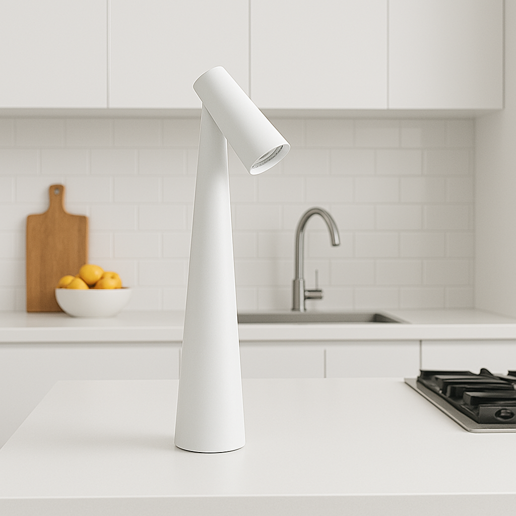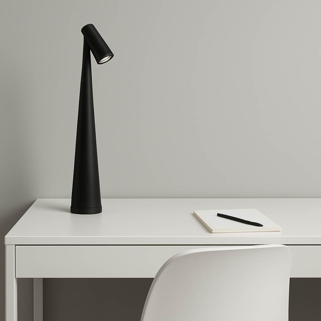 A sleek, minimalist lamp designed for modern living. With a cordless design, warm LED glow, and rechargeable battery, it brings cozy lighting anywhere perfect for bedrooms, workspaces, or relaxing corners.