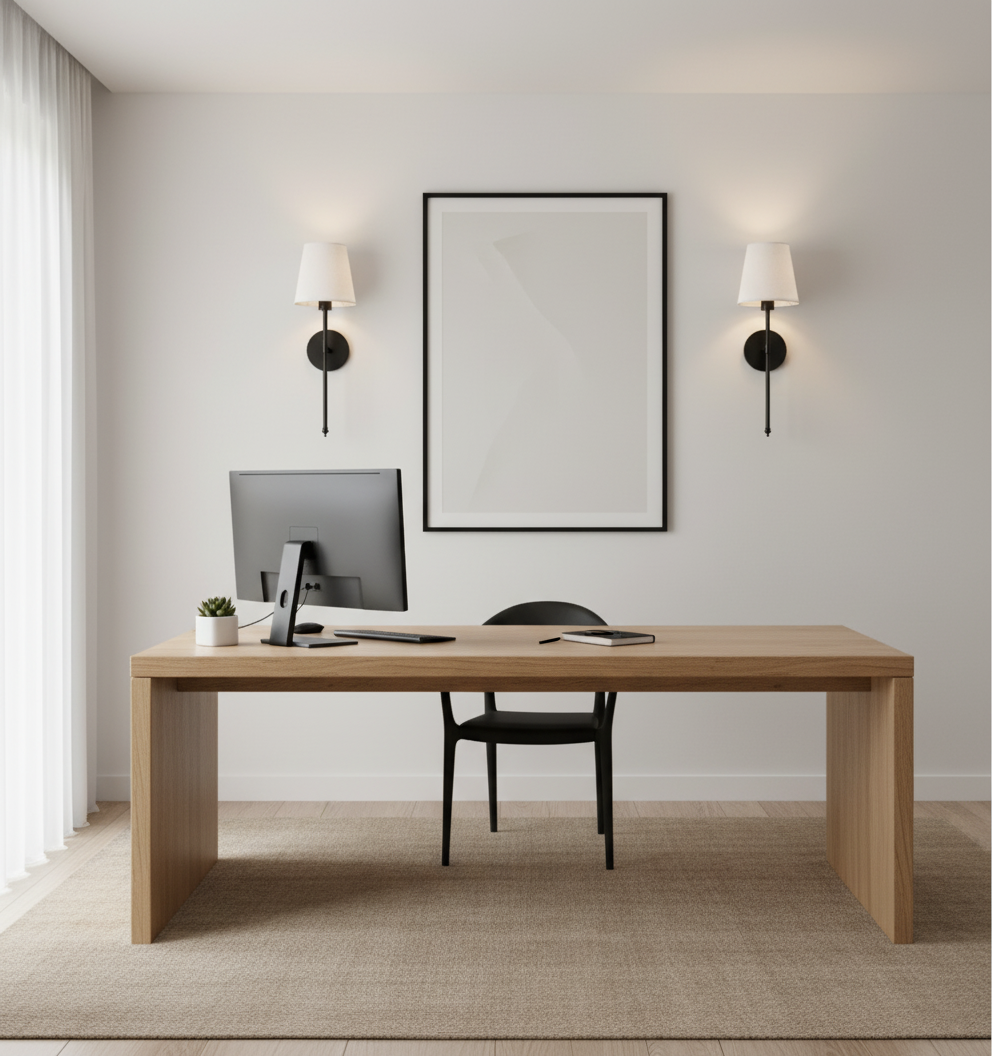 Wireless wall sconces bring focused yet ambient lighting to your desk room, creating a bright, modern, and comfortable environment for working, studying, or creating.